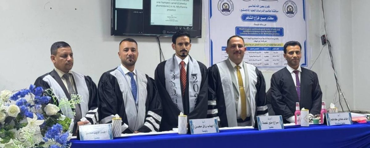2025-09-18شارك الاستاذ المساعد الدكتور احمد اديب محمد في المناقشة العلنية التي جرت في كلية الطب البيطري بجامعة المثنى، على قاعة ابن البيطار لطالب الماجستير مختار مسير الشاهر