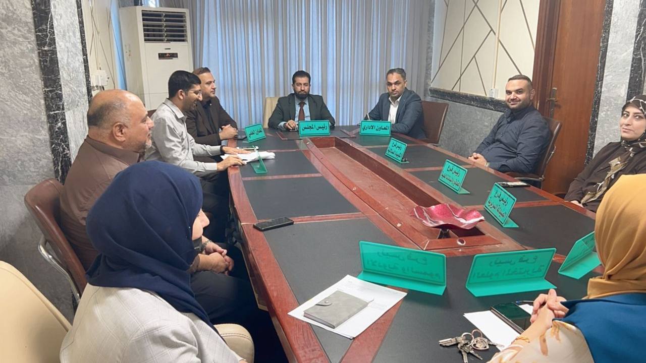 2025-10-09عقد مجلس كلية الصيدلة – جامعة المثنى جلسته الاعتيادية هذا اليوم الخميس الموافق 9 / 10 / 2025 برئاسة الأستاذ المساعد الدكتور حكمت باسم كركوش عميد الكلية، وبحضور السادة المعاونين ورؤساء الفروع العلمية وأعضاء المجلس.