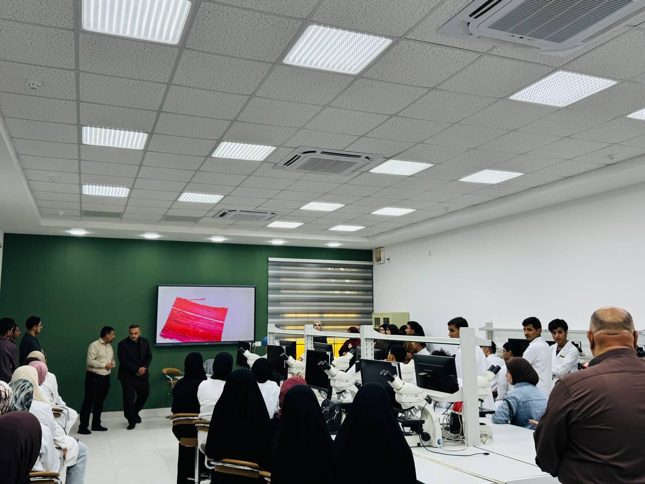 شملت الزيارة مختبر التشريح في كلية الطب، حيث اطّلع الطلبة على آلية الدروس العملية وشاهدوا الجثث التعليمية المحفوظة التي تُستخدم لأغراض التدريب الأكاديمي، مما أتاح لهم فرصة للتعرّف عن قرب على البنية التشريحية لجسم الإنسان وأهميتها في العلوم الطبية والصيدلانية.