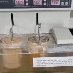 طلبة الصيدلة يجرون تجربة اختبار التفكك للأقراص ضمن مادة العملي للصيدلة الصناعية