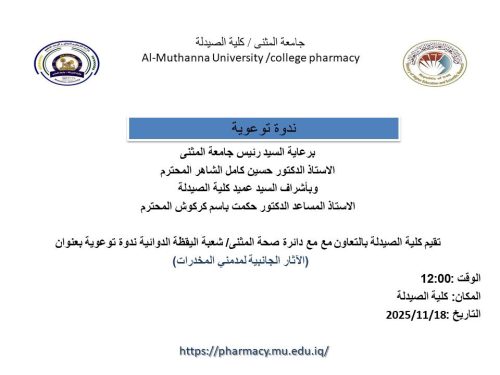 📍 المكان: كلية الصيدلة – جامعة المثنى