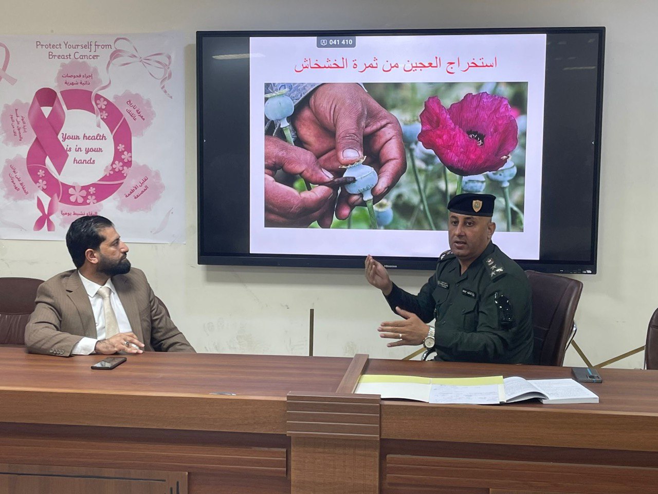 حاضر فيها العميد الدكتور باسم رزاق عبد ابو كحيلة معاون قائد الشرطة ، وتناولت الندوة التي شهدت حضور عدد من التدريسيين والطلبة، أبرز المخاطر الصحية والنفسية والاجتماعية المرتبطة بتعاطي المخدرات، مع تسليط الضوء على الأساليب الوقائية، ودور الأسرة والجامعة في حماية الشباب من الوقوع في هذه الآفة الخطيرة.