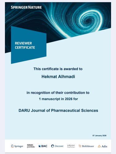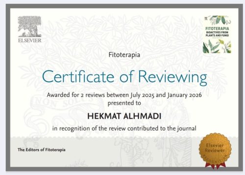 حصل الأستاذ المساعد الدكتور حكمت باسم كركوش عميد الكلية على شهادات تقدير بصفته مُحكِّمًا علميًا (Reviewer) في مجلات علمية عالمية ضمن التصنيفات Q1 وQ2، وذلك عن مساهمته في تقييم عدد من البحوث العلمية خلال عامي 2025–2026.