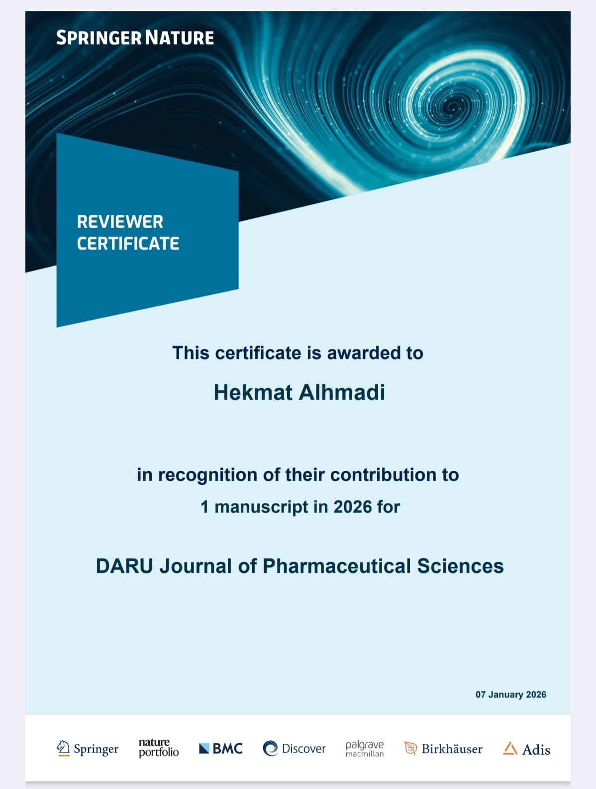 🔹 مجلة DARU Journal of Pharmaceutical Sciences (Q2) – Springer Nature
