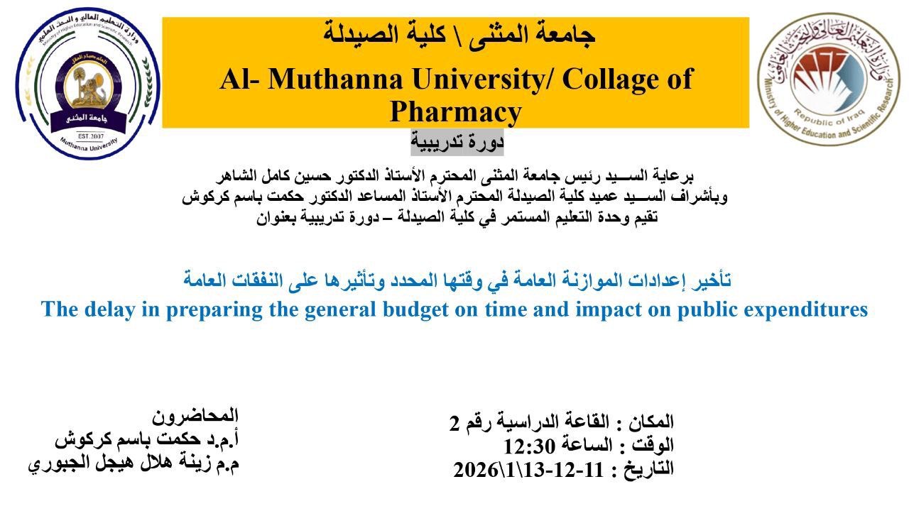 تتشرف وحدة التعليم المستمر في كلية الصيدلة بدعوتكم لحضور الدورة التدريبية الموسومة: