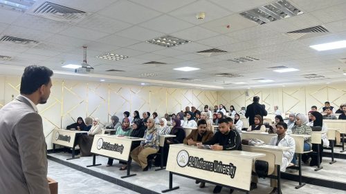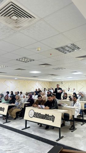(تأثير مرض الثلاسيميا في النظام الصحي)، وذلك صباح يوم الأربعاء الموافق 18/2/2026، على قاعة كلية الصيدلة.