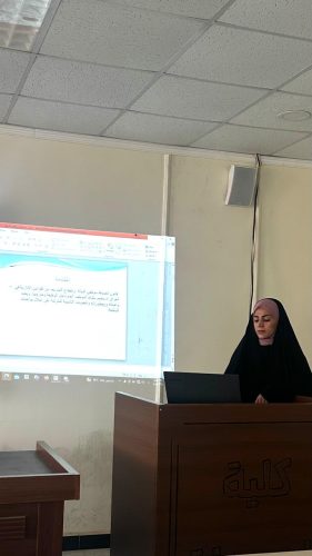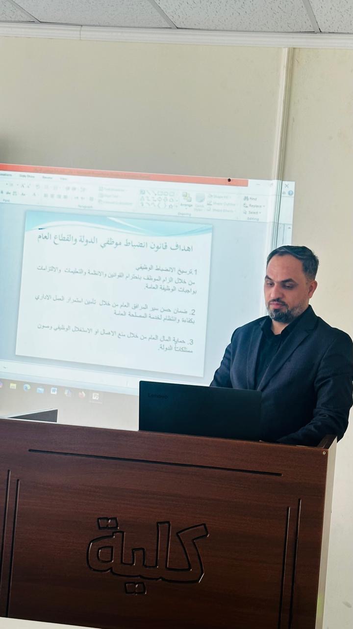 حاضر فيها ( أ.م.د علي عبد الرزاق لفتة العبودي ، م. م بيادر عماد صادق ) وبحضور عدد من تدريسي وموظفي الكلية.