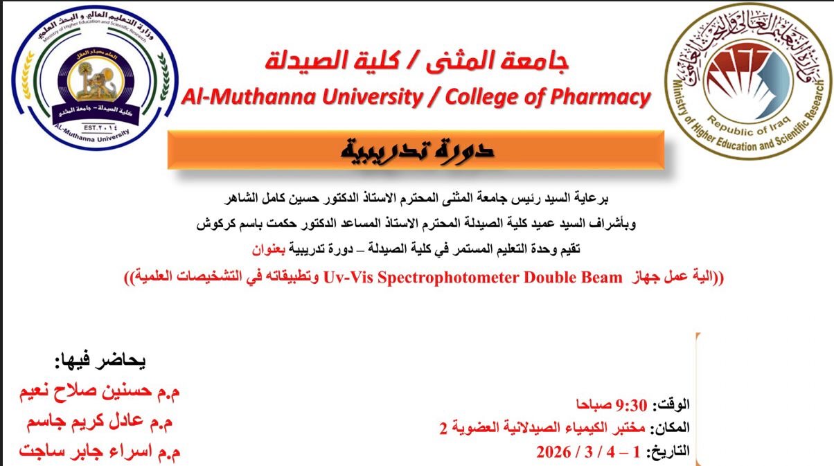 تتشرف وحدة التعليم المستمر في كلية الصيدلة بدعوتكم لحضور الدورة التدريبية الموسومة: