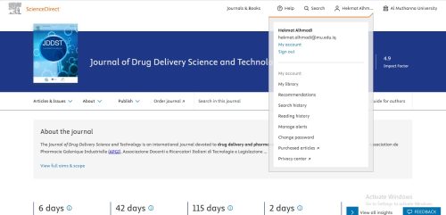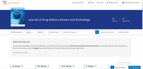 في إطار تعزيز الحضور الأكاديمي الدولي لكلية الصيدلة، تم اختيار الأستاذ المساعد الدكتور حكمت باسم كركوش ضمن قائمة المراجعين العلميين المحتملين (Reviewers) في مجلة علمية عالمية رصينة هي Journal of Drug Delivery Science and Technology، والمصنفة ضمن مجلات الربع الأول (Q1) وفق قواعد بيانات Scopus وClarivate، وبمعامل تأثير (Impact Factor) يبلغ (4.9).